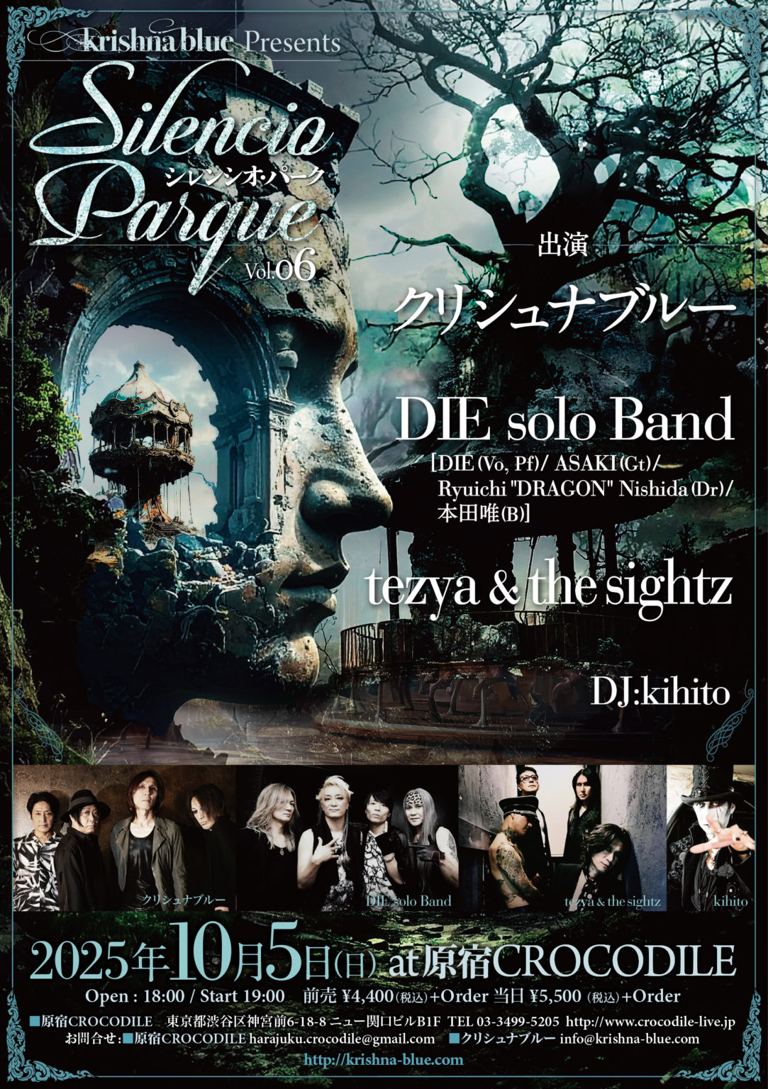 ACT : クリシュナブルー / DIE solo Band [DIE (Vo, Pf) / ASAKI (Gt) / Ryuichi “DRAGON” Nishida (Dr) / 本田唯(B)] / tezya & the sightz